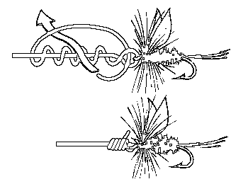 Nodo da mosca secca, chiude sulla testa della mosca.